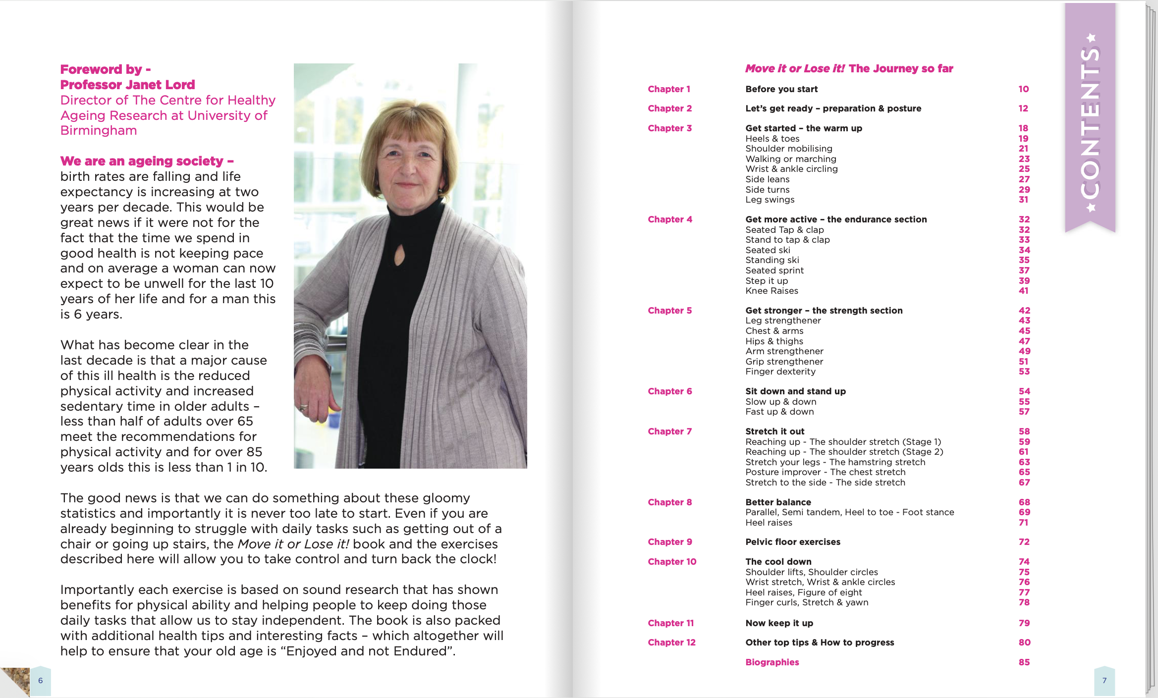 You can add our Stay Fit for Life book to your class equipment pack for just £10, a great deal compared to the retail price of £12.99. This book is the perfect companion to help you follow the exercises from your class at home. Packed with easy-to-follow exercises, tips, and practical advice, it’s an essential guide for anyone looking to stay active and live a longer, healthier life. The book features 30 step-by-step exercises, each with clearly illustrated photographs, designed for older adults and adaptable to your needs. By spending just 20 minutes a day (or 10 minutes twice a day) on the Move it or Lose it programme, you can enhance your strength, balance, fitness, and confidence—so you can keep enjoying the activities you love and live life to the fullest.